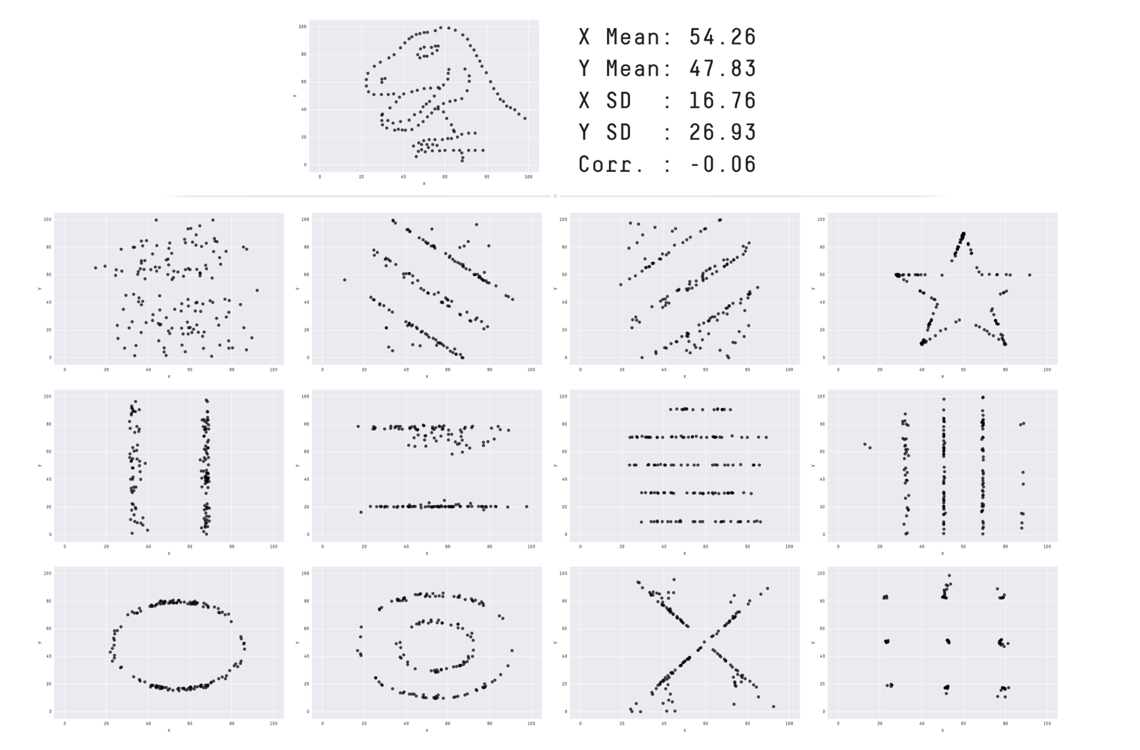 Let’s take a look at Albert Cairo’s Datasaurus dataset: